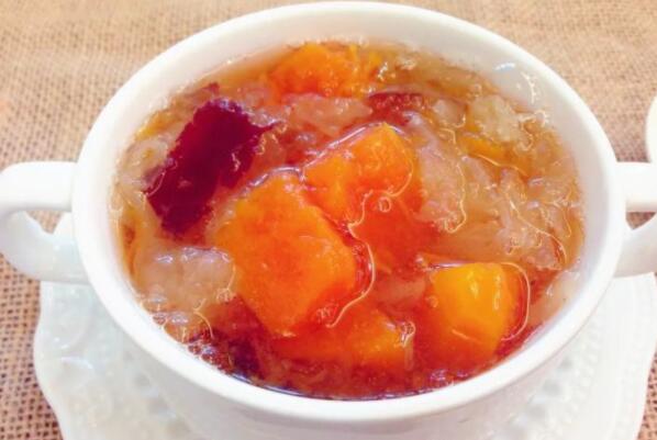 这道由木瓜、银耳经过简单工序制成的具有良好口感的粤菜系传统名点,在木瓜和银耳与冰糖一同放入锅中加入水炖煮半个小时至一小时后吃起来美味可口,并具有滋补美容、丰胸、补充营养的功效。