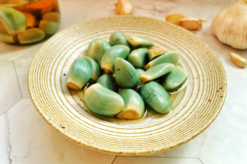 腊八蒜是用大蒜和醋泡制而成的,做出来的颜色是绿色的,吃起来比…
