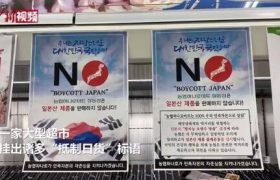 首尔一大型超市挂抵制日货标语 合起来手来共同抵制